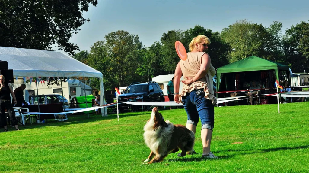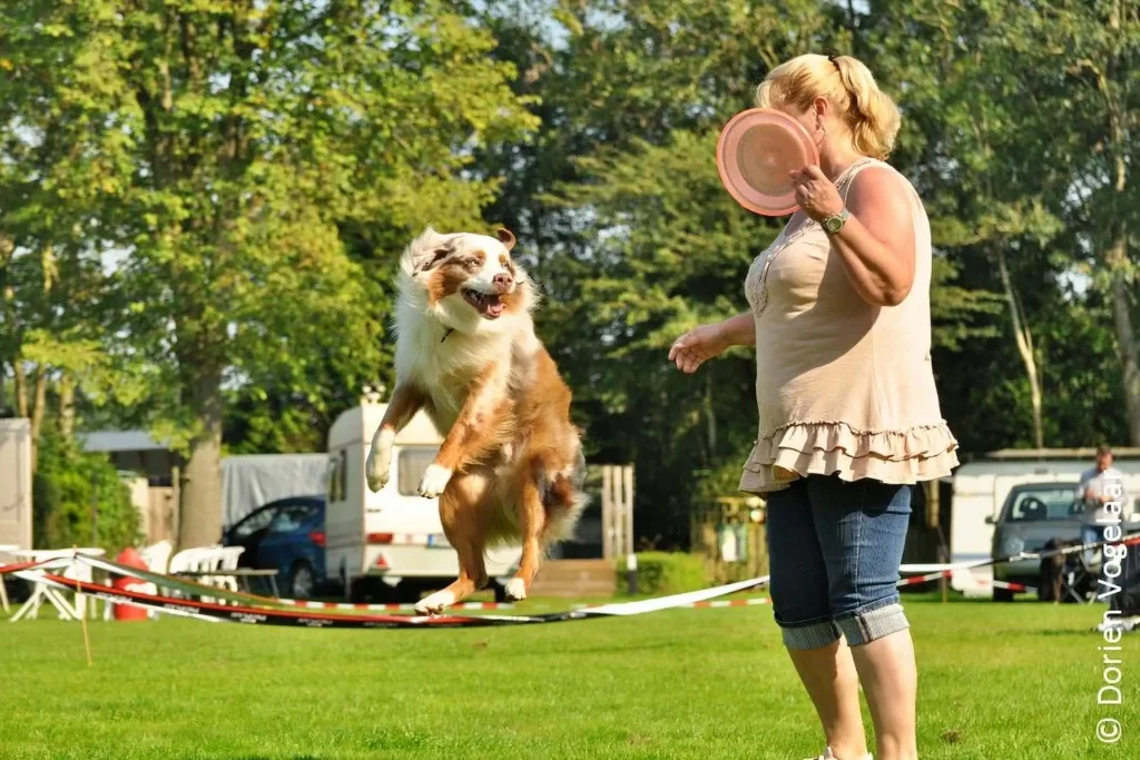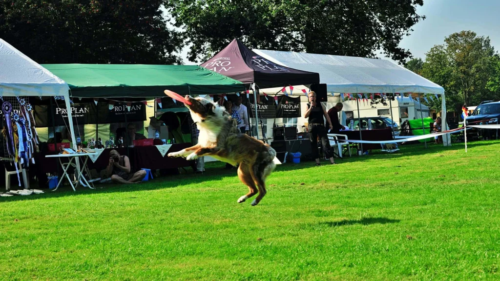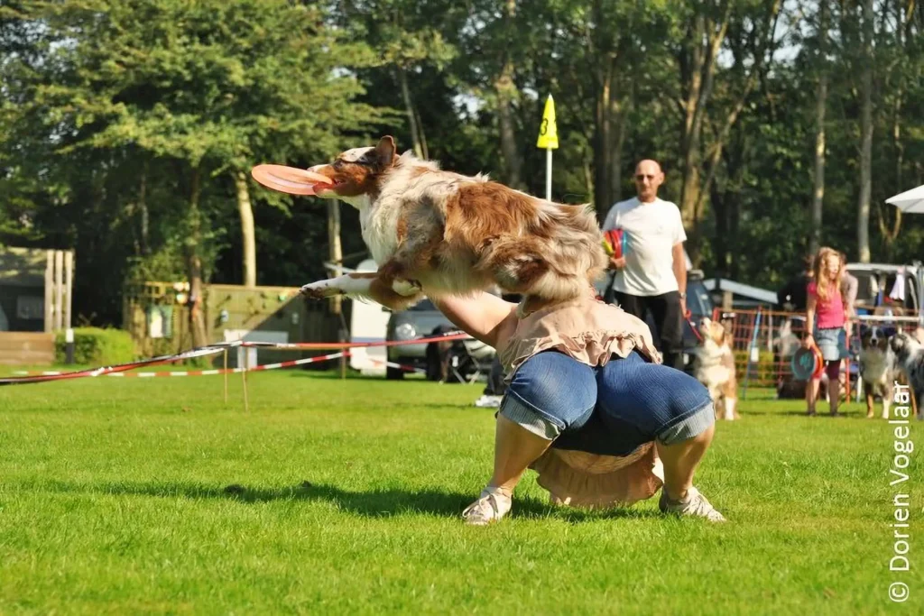Dus vanmorgen vroeg zijn we richting Leeuwarden gegaan. Daar aangekomen was de eerste vraag die ik kreeg toen ik uit de auto stapte, kun jij ook een frisbee demonstratie geven? Dat was Erica Honing van de Bouncers die deze vraag stelde. Zij was aanwezig met haar frisbeeshop en had de ASCN beloofd een frisbee demo te verzorgen. Ze vond het alleen wel erg veel gevraagd haar cursisten 2 uur heen en weer 2 uur terug auto te laten rijden voor een demo van 30 minuten. Dus ter plaatse heeft ze mensen gevraagd om aan de demo mee te werken. Nou frisbee ik serieus met mijn Aussies sinds juli 2011, pas erg kort dus. Maar we hebben altijd veel plezier tijdens de training en heb ik toegezegd mee te doen.