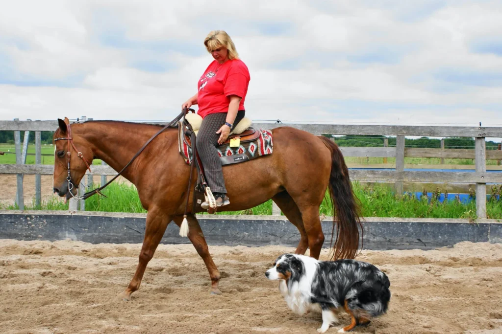 Om aan deze tak van het westernrijden mee te mogen doen, moet het paard minimaal 5 jaar oud zijn en de hond minimaal 12 maanden.