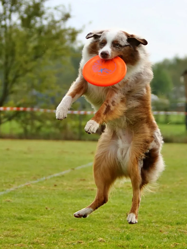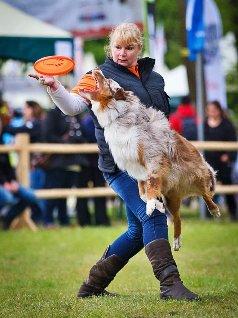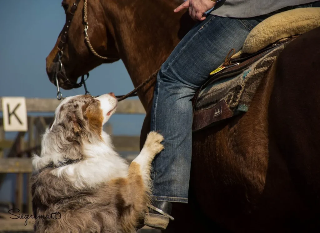 Net als Face en Jay loopt Ike ook mee naast het paard om ons te vergezellen op buitenritten. We zijn flink bezig met de Horse and Dog Trail. Ike is erg onbevangen en vrij t.o.v. paarden. Ike vindt de G&G oefeningen geweldig om te doen, maar het allermeest blinkt Ike uit in de dogfrisbee sport. Hier laat hij een enorme drive en atletisch vermogen zien. In de Dogfrisbee sport is Ike beter dan dat ik ben. Kortom Ike is een geboren werkhondje!