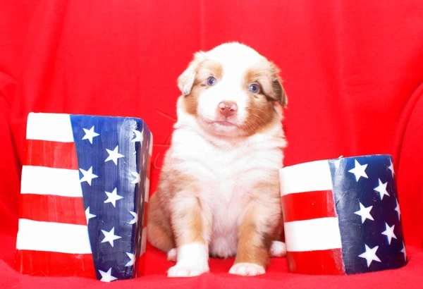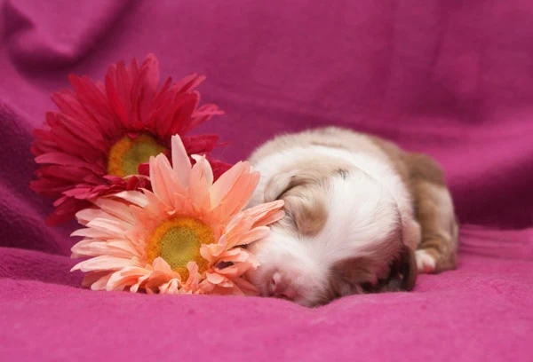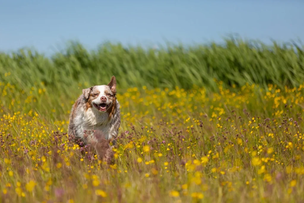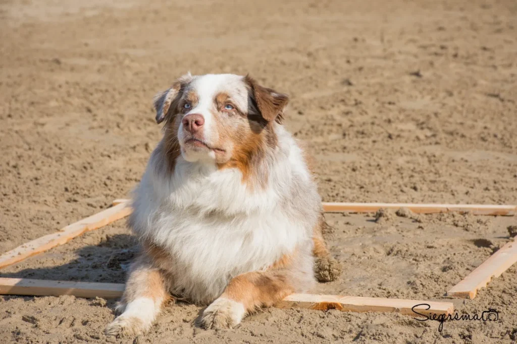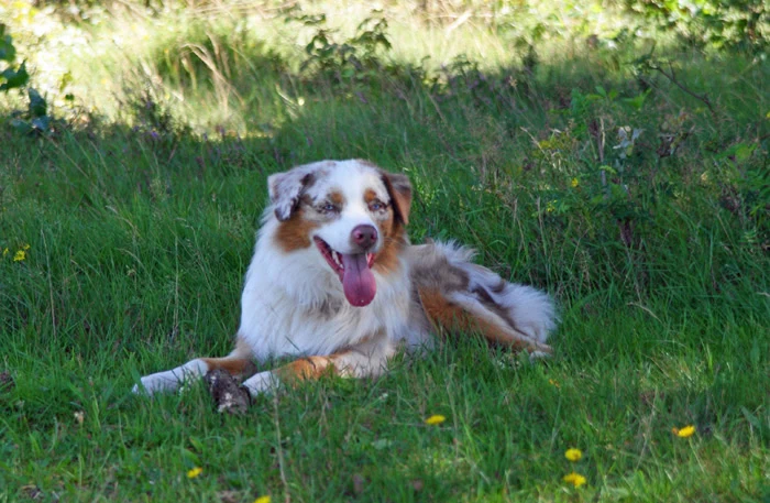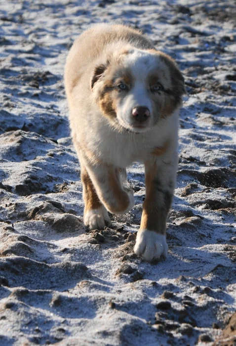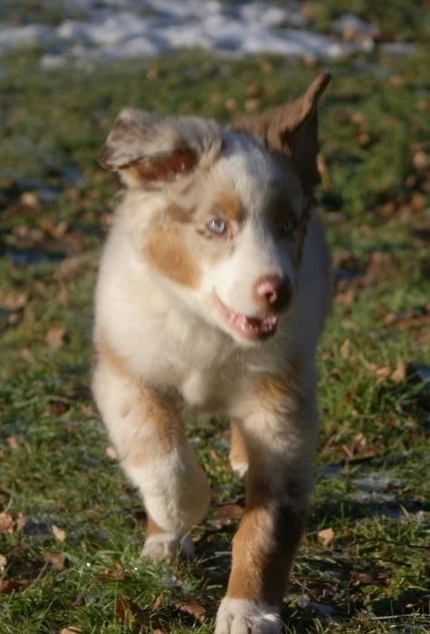 Flaming Star du Jardin de la Vigne (Blue merle, tan en wit) |