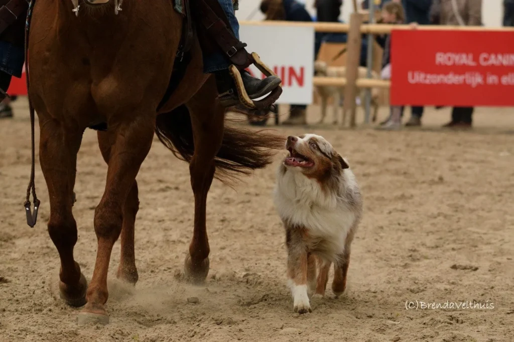 Samen met Jacqie en Ike heb ik in 2017 op het Animal Event in Hilvarenbeek een demonstratie Horse & Dog Trail gegeven. Wat heeft Ike hier hard gewerkt voor mij. Hij was echt de ster van de show!