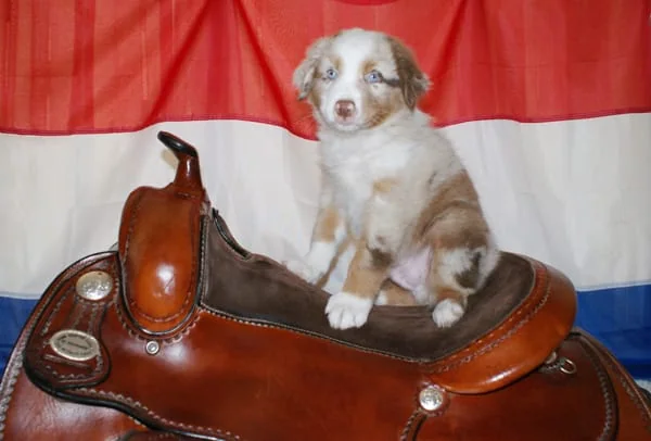 Sunswepts Excelent Choice (Blue merle, tan en wit) |