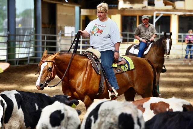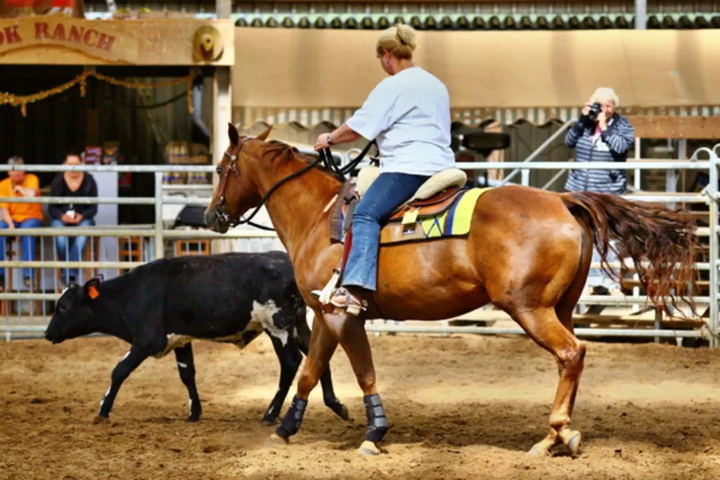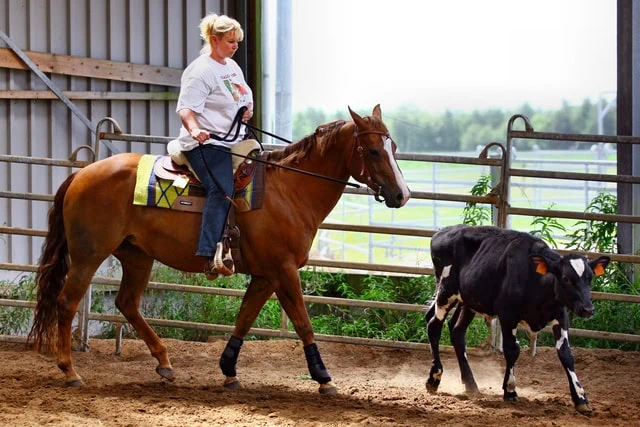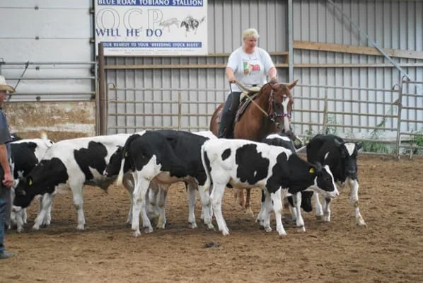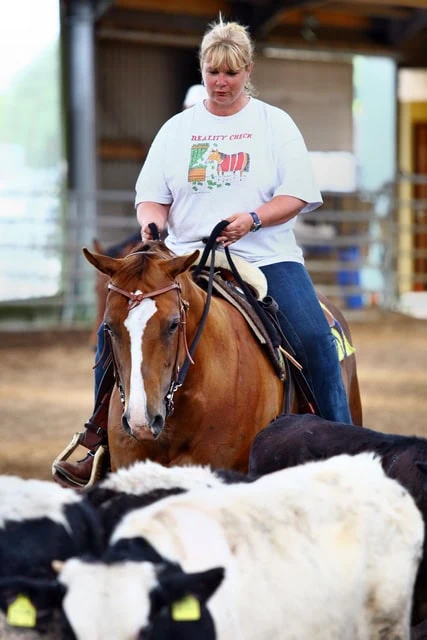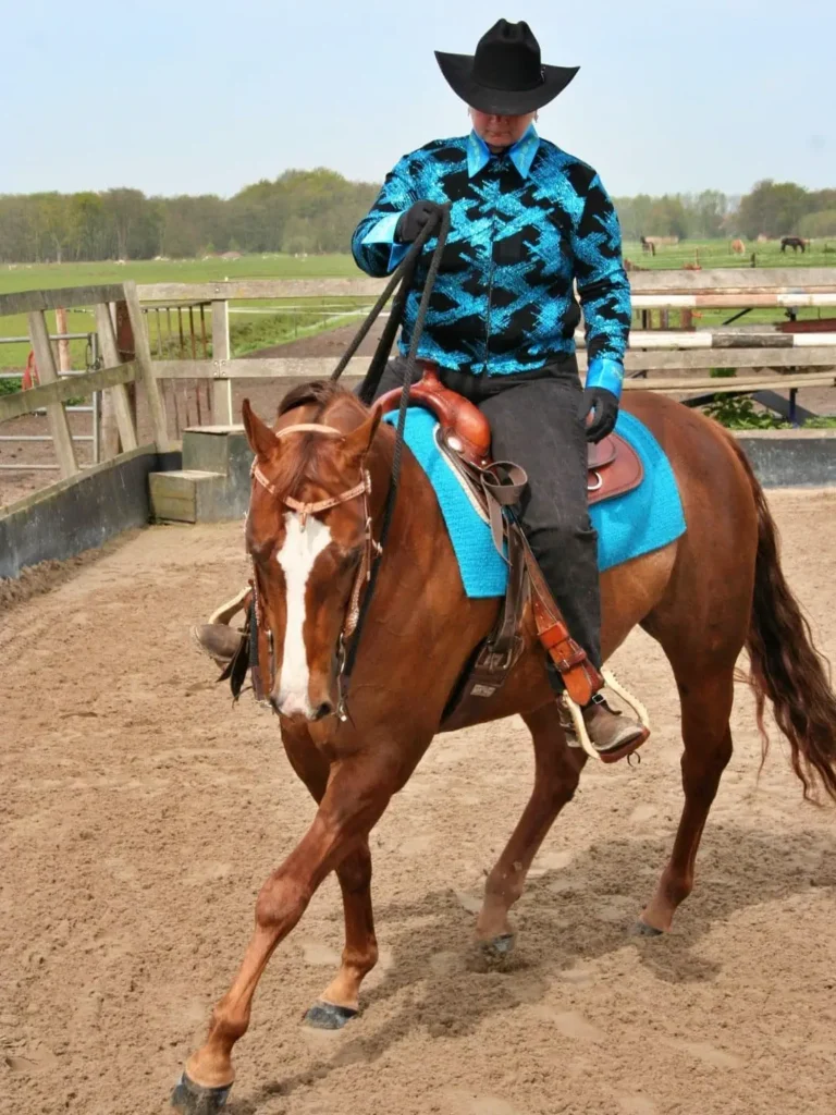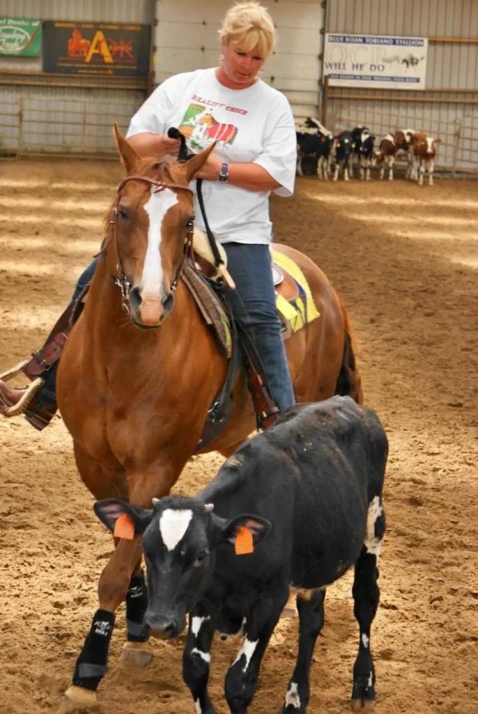 In 2009 ben ik met Jacqie eens voor de grap op een koeien snuffeldag op de A OK livestock Ranch in Makkinga geweest. Ik wilde toch wel eens weten of mijn meisje de beruchte ‘cow sence’ heeft. Nou dat heeft ze en Jac en ik gaan vanaf dat moment zoveel mogelijk maandelijks een keertje op de koeien trainen in Makkinga. Zowel in een groepsles als ook in privélessen beult onze instructeur Jan van Kesteren deze stadse deerne en haar paard, die met de koetjes willen spelen, flink af.