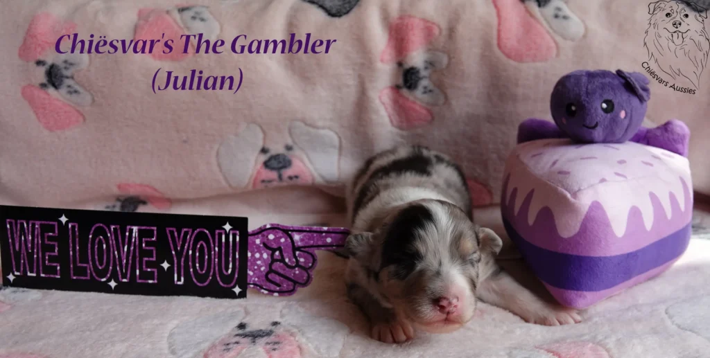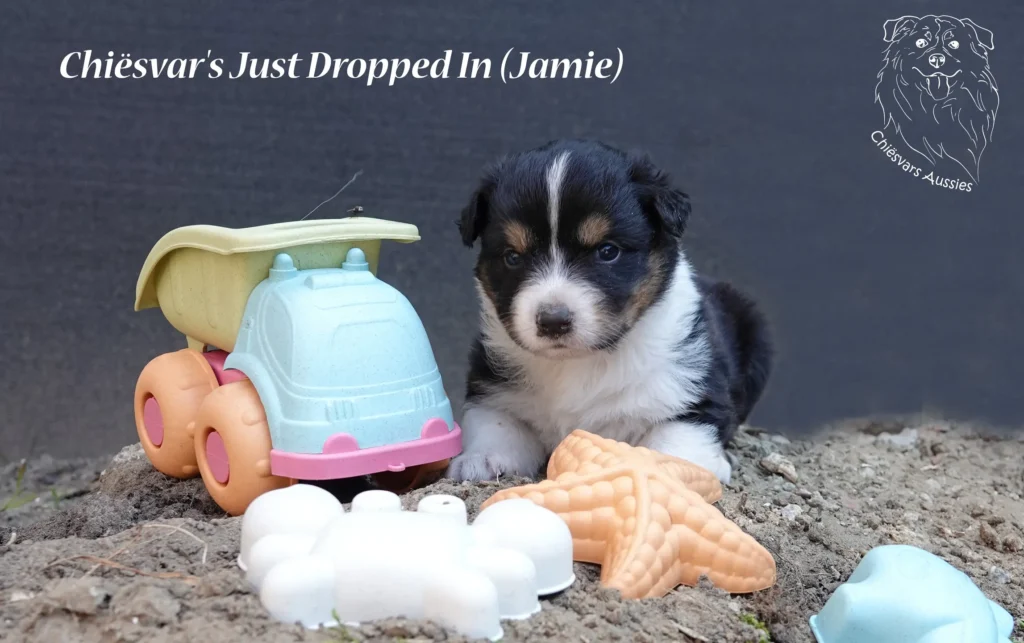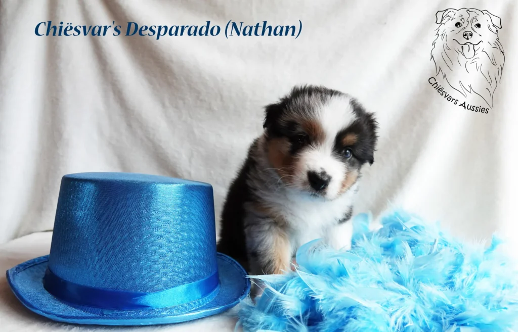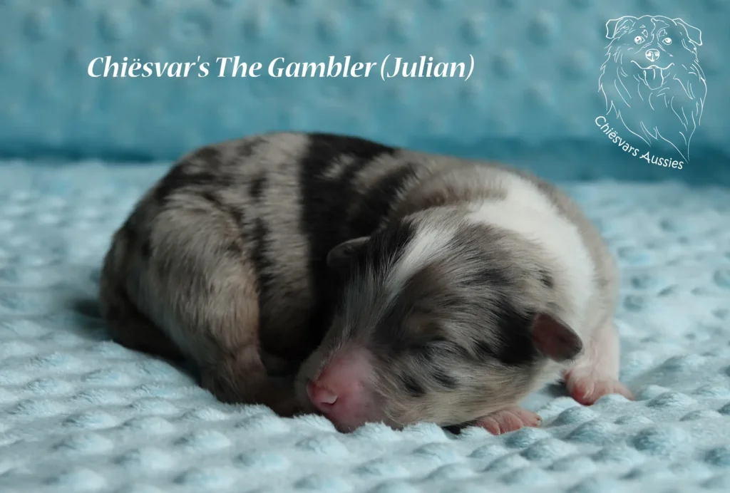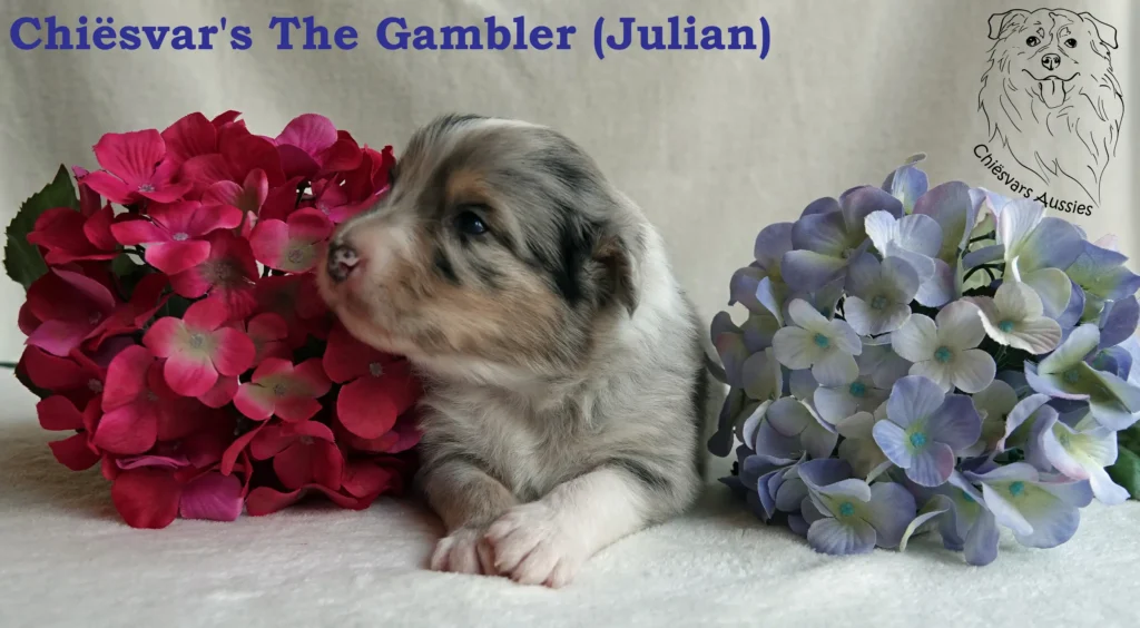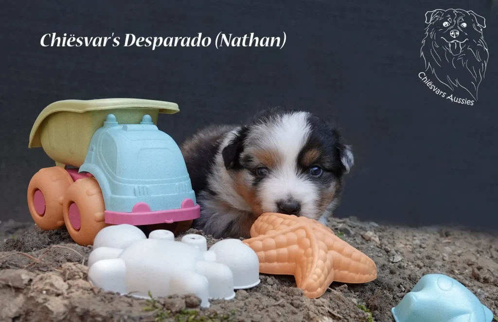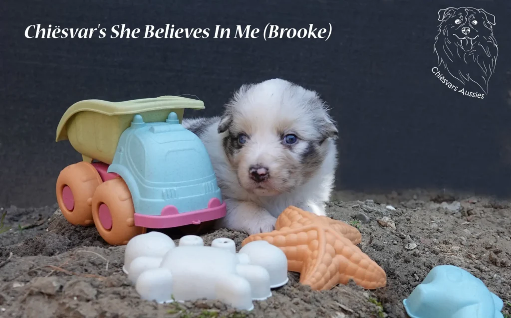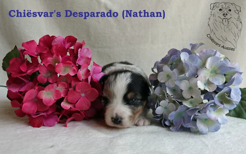 Riley is op 22 maart 2025 gedekt door Scott en op 20 mei 2025 zijn er 7 pups geboren, 4 reutjes en 3 teefjes. 1 black tri, 3 blue merle reutjes en 2 black tri en 1 blue merle teefje.