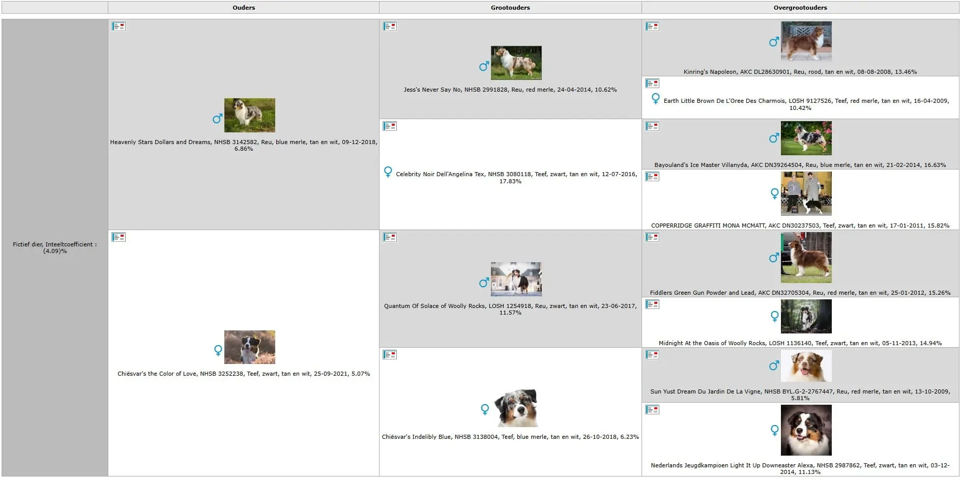De pups uit deze combinatie zijn genetisch vrij voor: