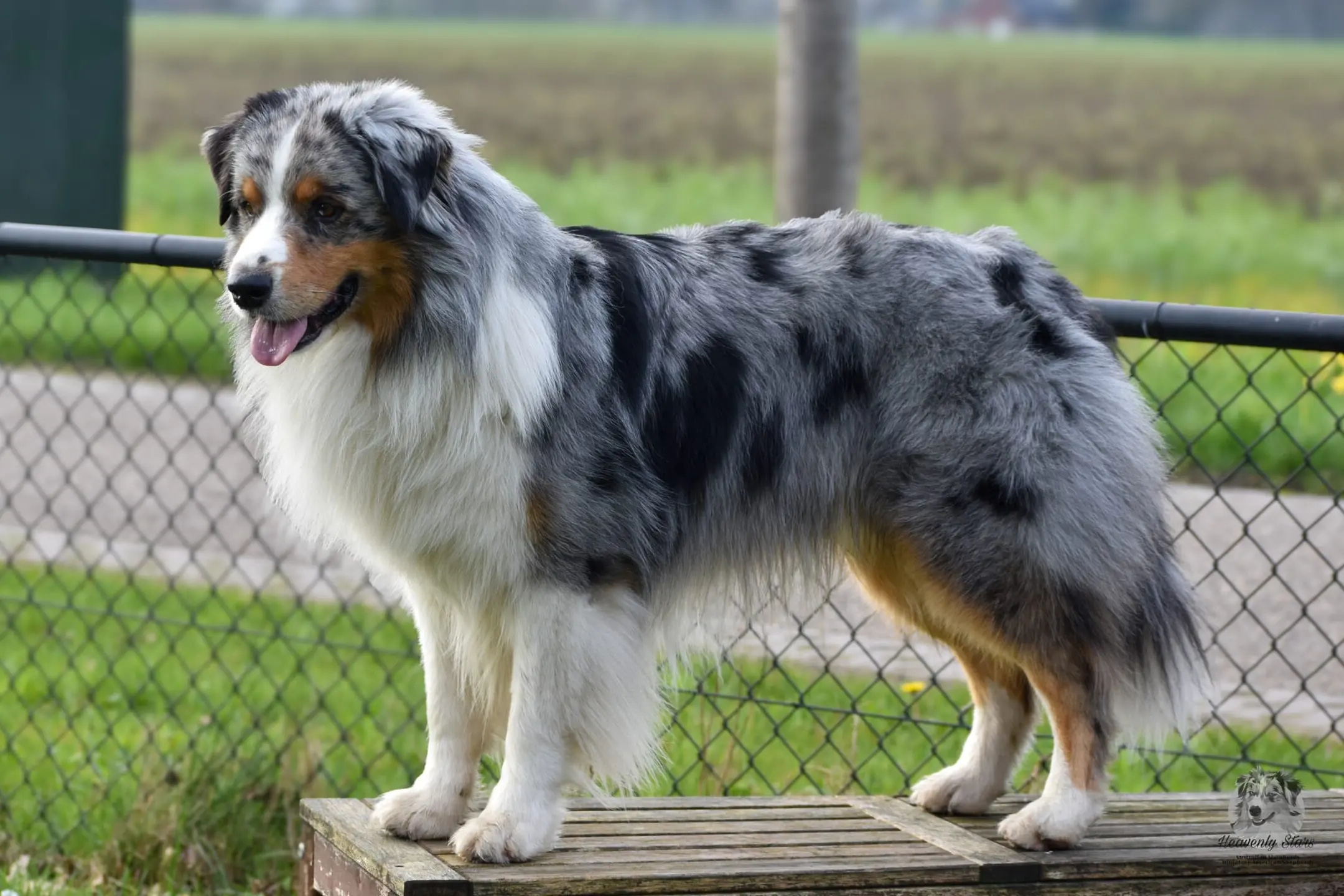 Riley is op 22 maart 2025 gedekt door Scott en op 20 mei 2025 zijn er 7 pups geboren, 4 reutjes en 3 teefjes. 1 black tri, 3 blue merle reutjes en 2 black tri en 1 blue merle teefje.