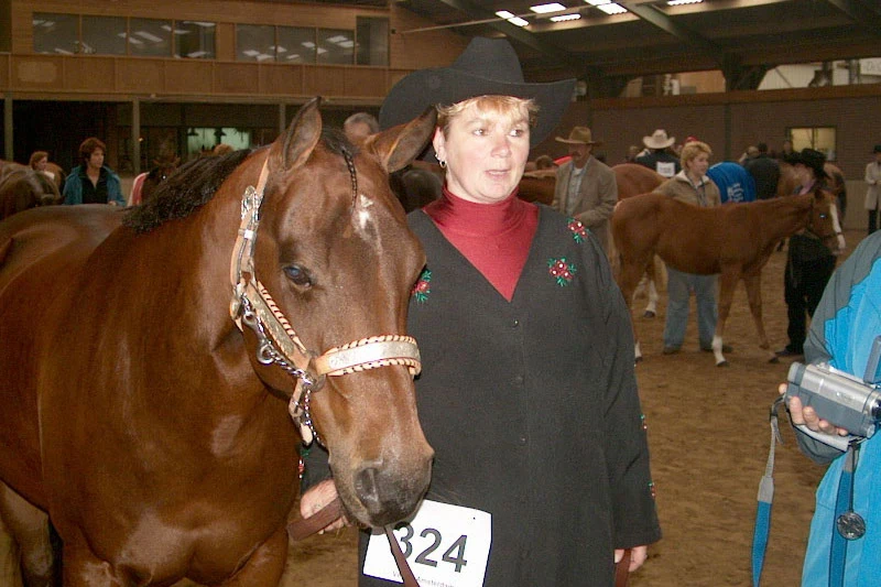 Okidokie was een baykleurige Quarterhorse merrie. Ik heb haar in 2000 gekocht bij de A Ok Ranch. Okie was toen zadelmak en er zat een stuur op. Samen zijn we verder gegaan in de discipline reining. Dit bleek echter met mijn whiplash en rugproblemen (overgehouden aan een auto ongeluk) toch niet zo’n succes. We zijn toen recreatief verder gegaan. Okidokie was een heerlijk paard om buitenritjes mee te maken!